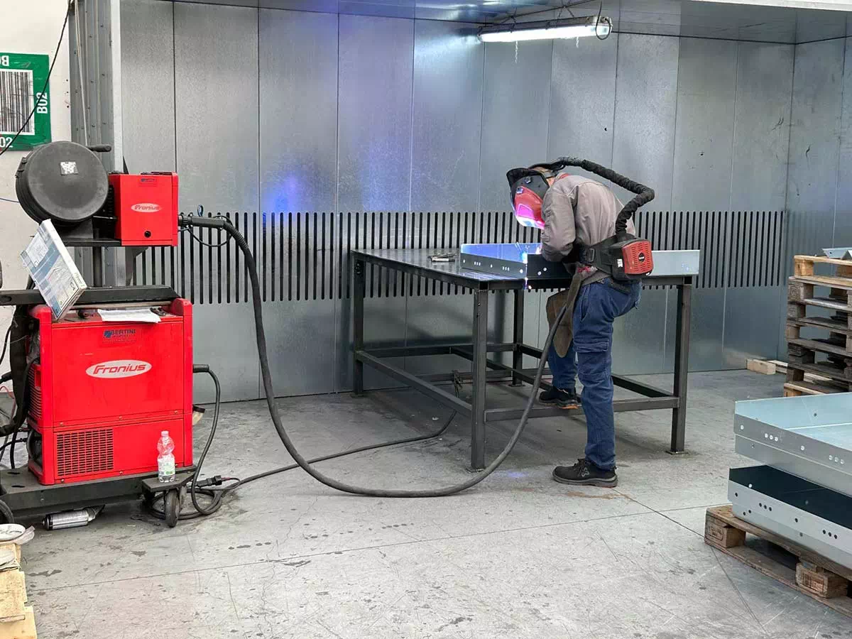 Oltre ai macchinari, abbiamo uno spazioso reparto saldatura dove i nostri tecnici lavorano con strumenti di ultima generazione, un’area dedicata al montaggio di scale per betoniere e una per il montaggio di pozzetti.